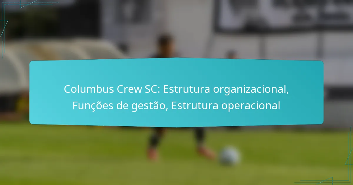 A estrutura de gestão do Columbus Crew SC é projetada para otimizar o desempenho da equipa e o envolvimento da comunidade. Os papéis-chave incluem o gerente geral, o treinador principal, os treinadores assistentes, o diretor técnico e a equipe de envolvimento comunitário, cada um contribuindo para o sucesso do clube tanto dentro como fora do campo.