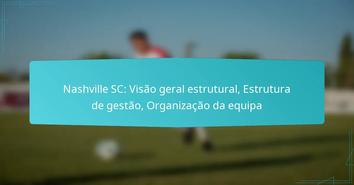 Nashville SC é um clube de futebol profissional localizado em Nashville, Tennessee, que compete na Major League Soccer (MLS). O clube possui uma estrutura de gestão organizada que inclui propriedade, liderança executiva e uma equipa técnica dedicada, todos a trabalhar em conjunto para impulsionar o sucesso da equipa. Com um foco na colaboração entre departamentos, o Nashville SC visa otimizar o desempenho e fortalecer o envolvimento da comunidade.