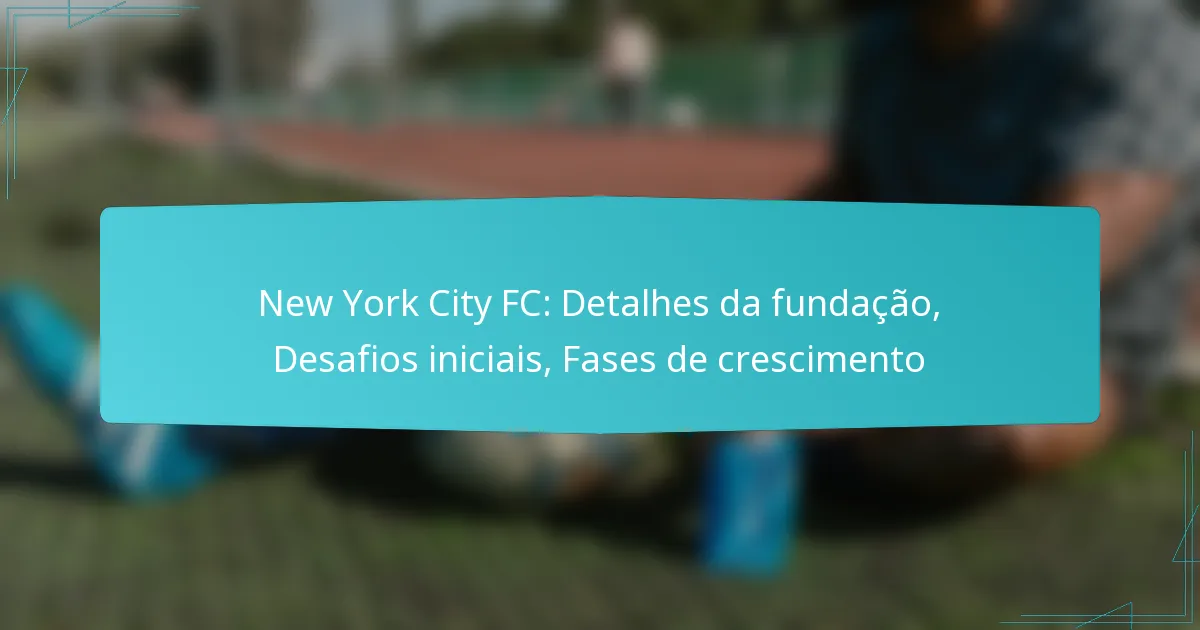 A New York City FC tem experienciado várias fases de crescimento desde a sua fundação em 2013, marcadas por aquisições chave de jogadores, mudanças de treinadores e marcos no desempenho da liga. Estas fases refletem a evolução do clube e as suas estratégias para envolver os fãs e alcançar sucesso na Major League Soccer (MLS).
