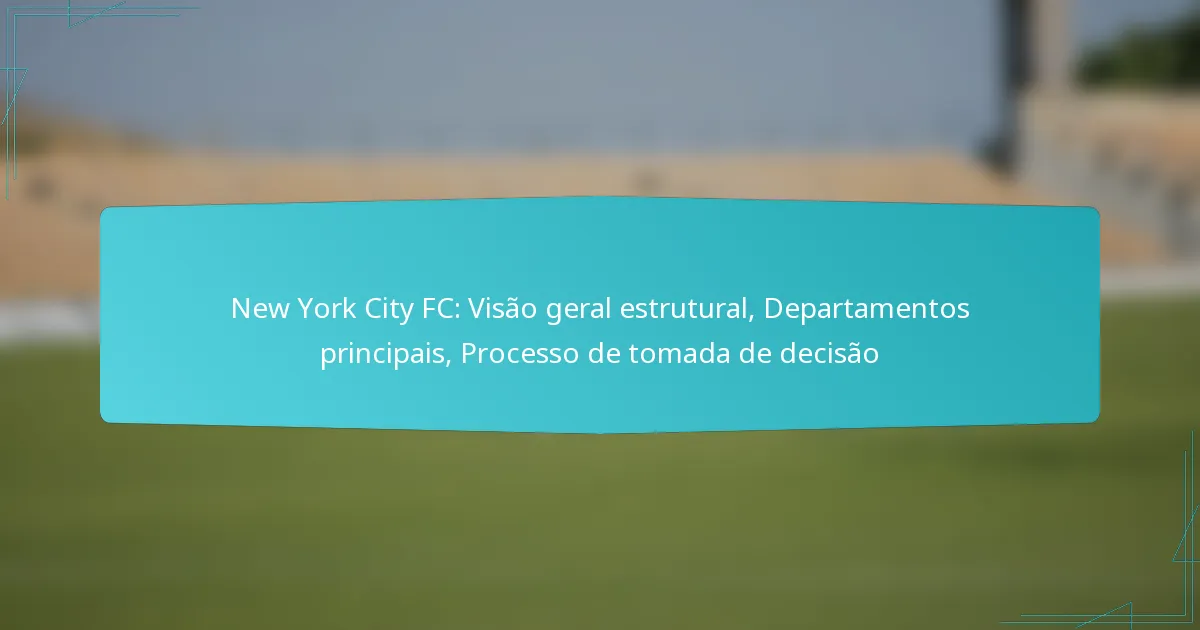 O New York City FC (NYCFC) opera dentro de uma estrutura organizacional distinta que combina propriedade, gestão e estratégias operacionais para prosperar na Major League Soccer (MLS). A organização do clube enfatiza a colaboração entre departamentos-chave, como marketing, desenvolvimento de jogadores e treino, todos contribuindo para o seu sucesso e envolvimento com a comunidade. A tomada de decisões no NYCFC segue uma hierarquia estruturada, promovendo a alinhamento com os objetivos estratégicos através da contribuição colaborativa de várias partes interessadas.