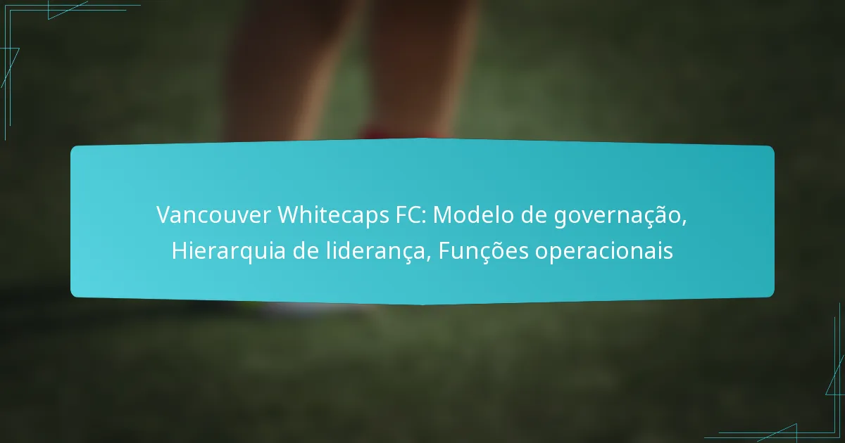 A estrutura de liderança do Vancouver Whitecaps FC consiste numa hierarquia bem definida que inclui funções executivas, alta gestão e equipas operacionais. Este modelo de governança assegura uma tomada de decisão eficaz e uma direção estratégica para o clube, impactando o seu desempenho geral e cultura.